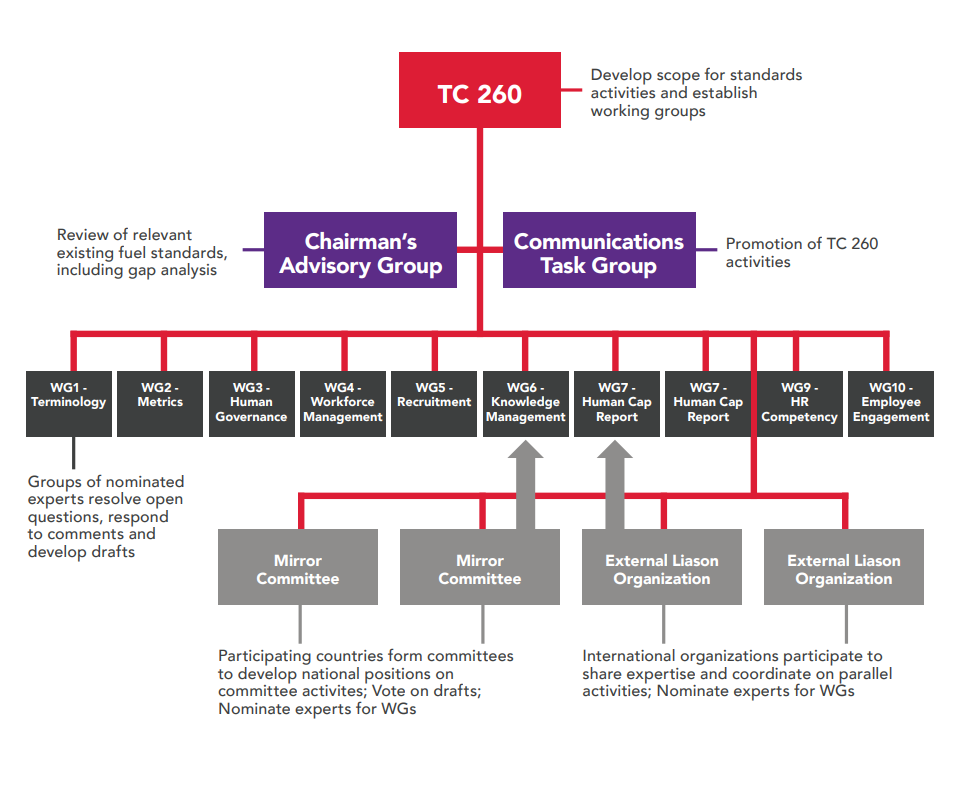 ISO TC 260 is responsible for the development of a series of standards for human resource management processes and practices. There are 32 standards and technical specifications published, with 7 more under development. One of the most noteworthy standards from this work is ISO 30414 Human Capital Reporting which many chief financial officers believe is a safe harbor for the recent ruling from the SEC requiring Human Capital Management Disclosures.